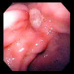 Au niveau du bulbe, on retrouve un ulcère superficiel de forme arrondie mesurant 5 mm. Ses berges sont régulières et enraidies.